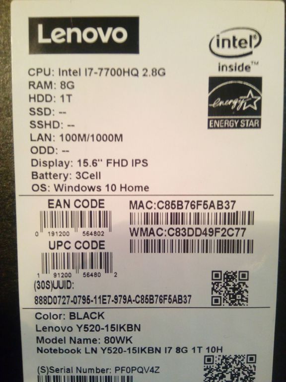 НА ГАРАНТИИ ОТ ПРОИЗВОДИТЕЛЯ ДО 08.2019 (БЕСПЛАТНЫЙ РЕМОНТ В ЛЮБОМ ОФИЦИАЛЬНОМ СЕРВИСНОМ ЦЕНТРЕ LENOVO)