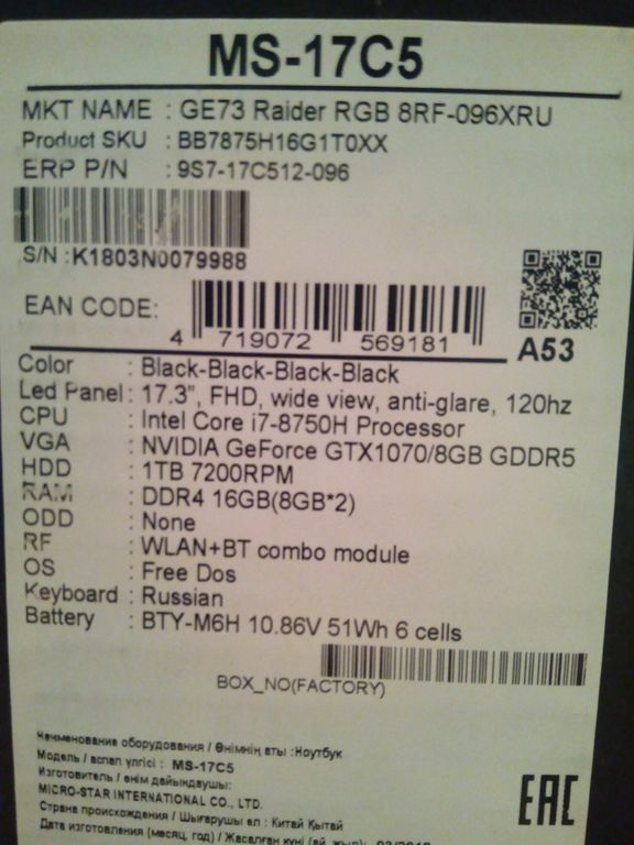 НА МИРОВОЙ ГАРАНТИИ ОТ ПРОИЗВОДИТЕЛЯ ДО 08.2021 (БЕСПЛАТНЫЙ РЕМОНТ В ЛЮБОМ ОФИЦИАЛЬНОМ СЕРВИСНОМ ЦЕНТРЕ MSI)