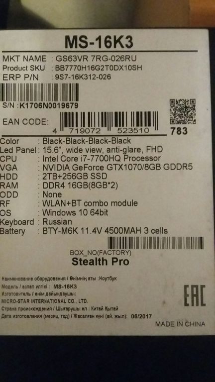 !!!!НА ГАРАНТИИ ОТ ПРОИЗВОДИТЕЛЯ ДО 06.2020!!!!(БЕСПЛАТНЫЙ РЕМОНТ В ЛЮБОМ ОФИЦИАЛЬНОМ СЕРВИСЕ MSI)