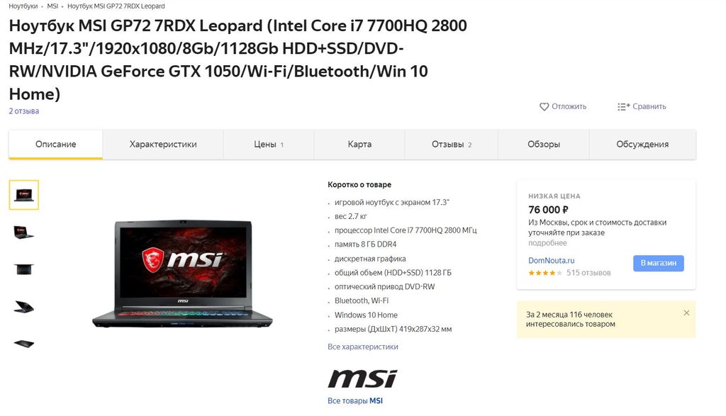 НА ГАРАНТИИ ОТ ПРОИЗВОДИТЕЛЯ ДО 05.2019Г. (бесплатный ремонт в любом официальном сервисе msi)