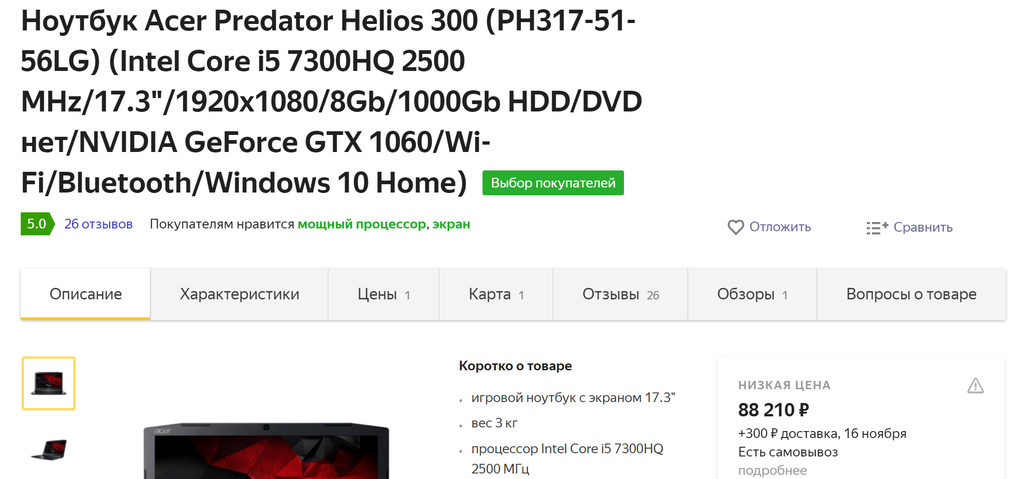 ПРОЦЕССОР - i5-7300HQ 2500-3500МГц 4 ЯДРА