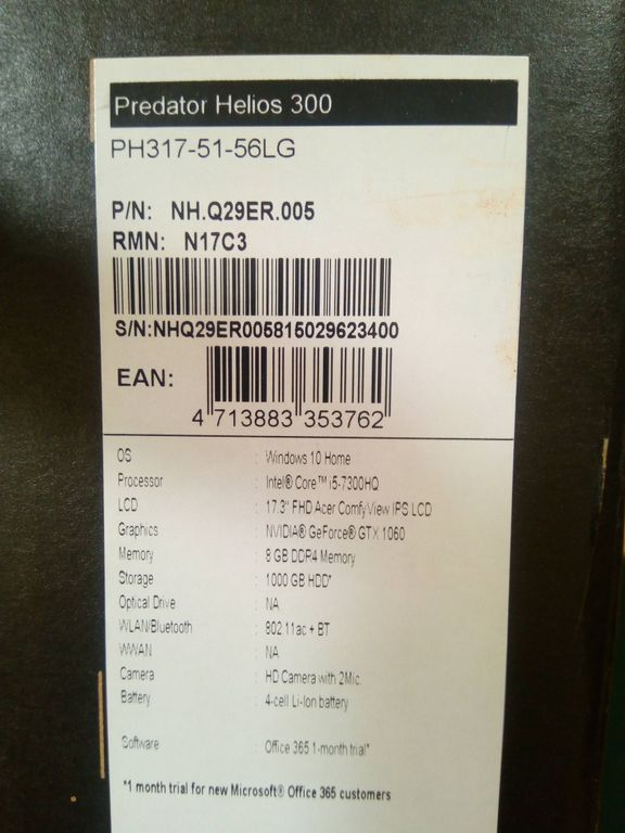 НА ГАРАНТИИ ОТ ПРОИЗВОДИТЕЛЯ ДО 09.04.2020 (БЕСПЛАТНЫЙ РЕМОНТ В ЛЮБОМ ОФИЦИАЛЬНОМ СЕРВИСНОМ ЦЕНТРЕ ACER)