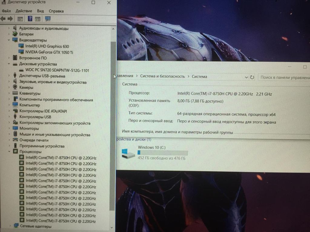 ПРОЦЕССОР - i7-8750H 12 ЯДЕР 2200-4100MHz