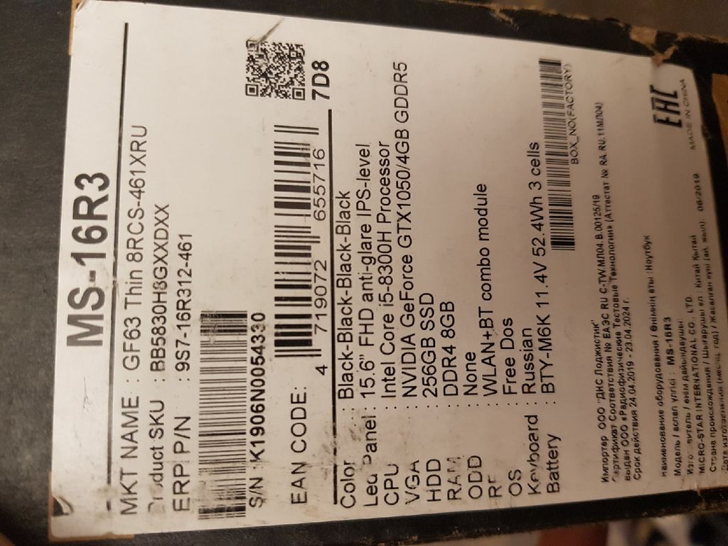 НА ГАРАНТИИ ОТ ПРОИЗВОДИТЕЛЯ ДО 06.2021 (БЕСПЛАТНЫЙ РЕМОНТ В ЛЮБОМ ОФИЦИАЛЬНОМ СЕРВИСЕ MSI)