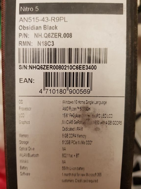 НА ГАРАНТИИ ОТ ПРОИЗВОДИТЕЛЯ ДО 20.05.2022 (БЕСПЛАТНЫЙ РЕМОНТ В ЛЮБОМ ОФИЦИАЛЬНОМ СЕРВИСНОМ ЦЕНТРЕ ACER)