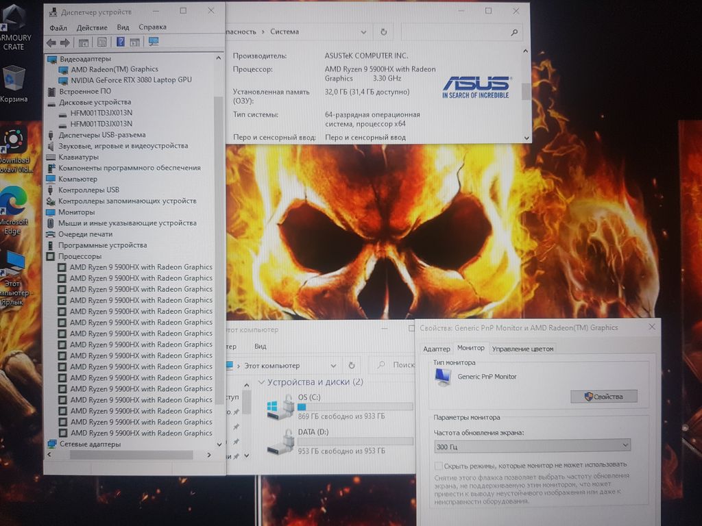 ЖЕСТКИЙ ДИСК - 2xSSD 1Tb M.2 PCI EXPRESS (ТВЕРДОТЕЛЬНЫЙ НАКОПИТЕЛЬ. НА НЕМ УСТАНОВЛЕНА WIN10)
