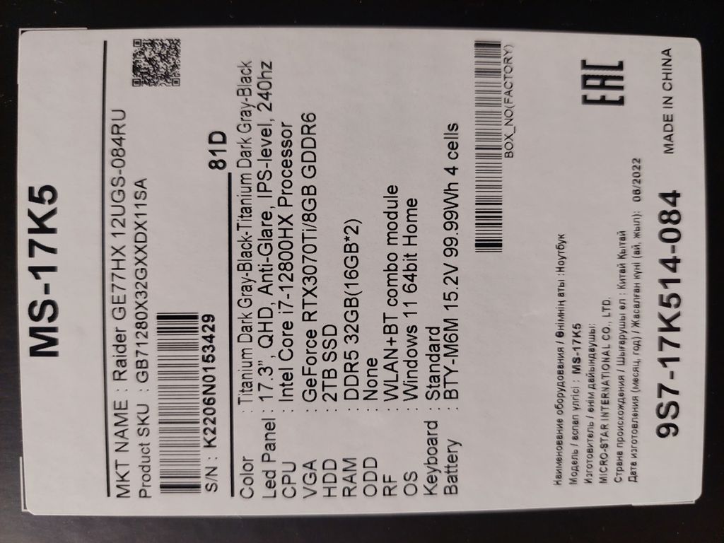 НА ГАРАНТИИ ОТ ПРОИЗВОДИТЕЛЯ ДО 06.2025 (БЕСПЛАТНЫЙ РЕМОНТ В ЛЮБОМ ОФИЦИАЛЬНОМ СЕРВИСНОМ ЦЕНТРЕ MSI)