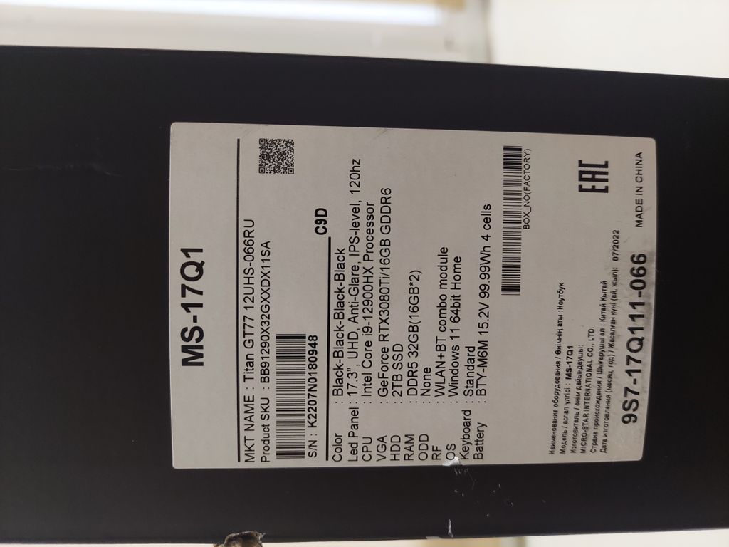 НА ГАРАНТИИ ОТ ПРОИЗВОДИТЕЛЯ ДО 07.2025 (БЕСПЛАТНЫЙ РЕМОНТ В ЛЮБОМ ОФИЦИАЛЬНОМ СЕРВИСНОМ ЦЕНТРЕ MSI)