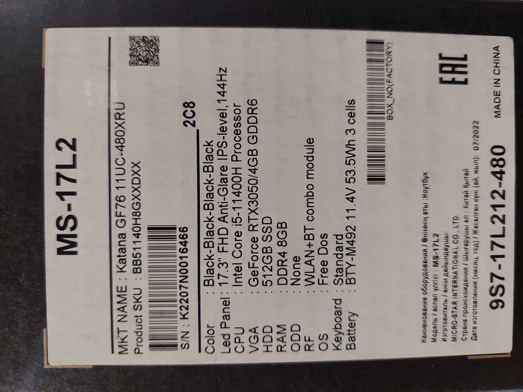 НА ГАРАНТИИ ОТ ПРОИЗВОДИТЕЛЯ ДО 07.2024 (БЕСПЛАТНЫЙ РЕМОНТ В ЛЮБОМ ОФИЦИАЛЬНОМ СЕРВИСНОМ ЦЕНТРЕ MSI)