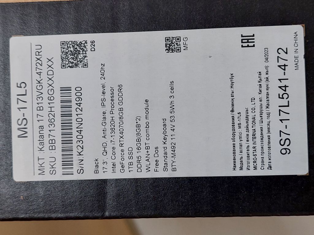 НА ГАРАНТИИ ОТ ПРОИЗВОДИТЕЛЯ ДО 04.2026 (БЕСПЛАТНЫЙ РЕМОНТ В ЛЮБОМ ОФИЦИАЛЬНОМ СЕРВИСНОМ ЦЕНТРЕ MSI)