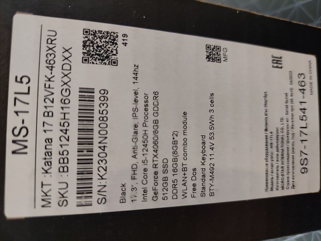 НА ГАРАНТИИ ОТ ПРОИЗВОДИТЕЛЯ ДО 10.2025 (БЕСПЛАТНЫЙ РЕМОНТ В ЛЮБОМ ОФИЦИАЛЬНОМ СЕРВИСНОМ ЦЕНТРЕ MSI)