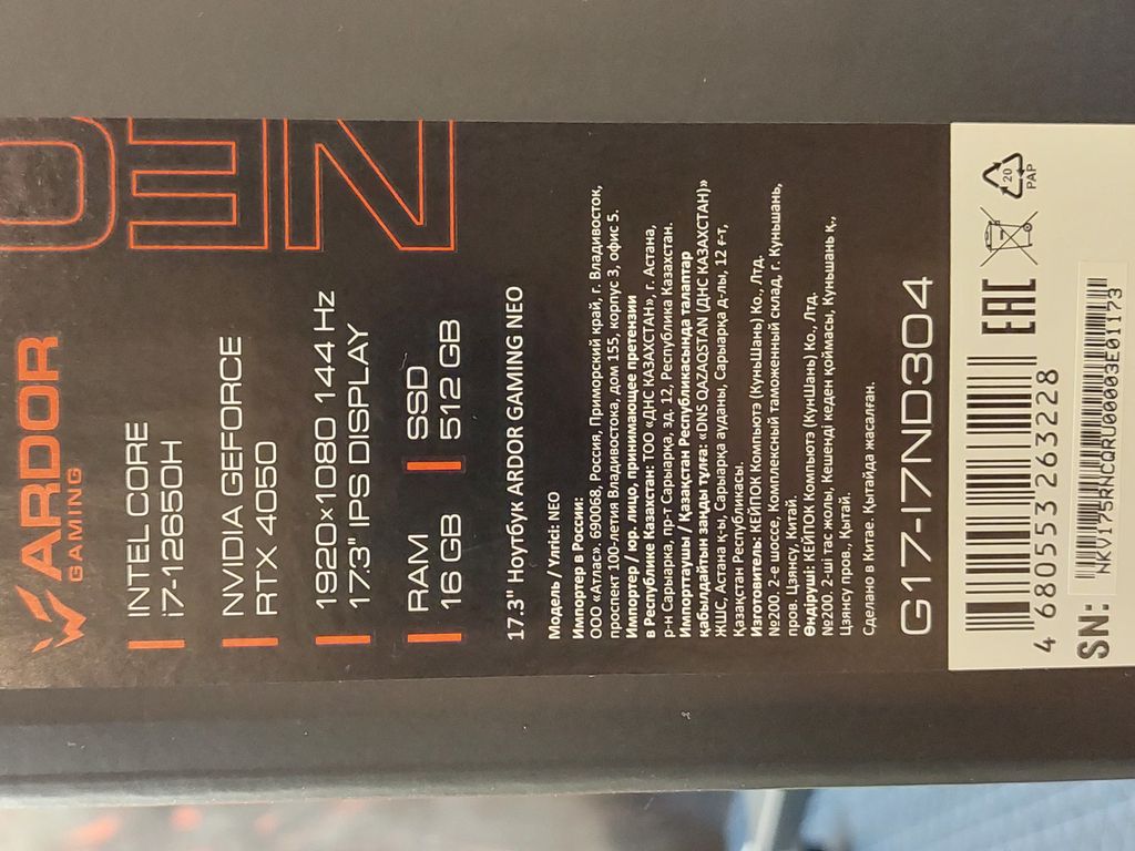 ЭКРАН - 17.3 FULL HD (1920x1080) МАТОВЫЙ IPS 144Hz