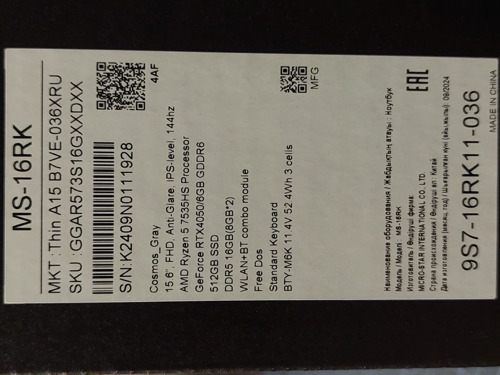 НА ГАРАНТИИ ОТ ПРОИЗВОДИТЕЛЯ ДО 09.2026 (БЕСПЛАТНЫЙ РЕМОНТ В ЛЮБОМ ОФИЦИАЛЬНОМ СЕРВИСНОМ ЦЕНТРЕ MSI)