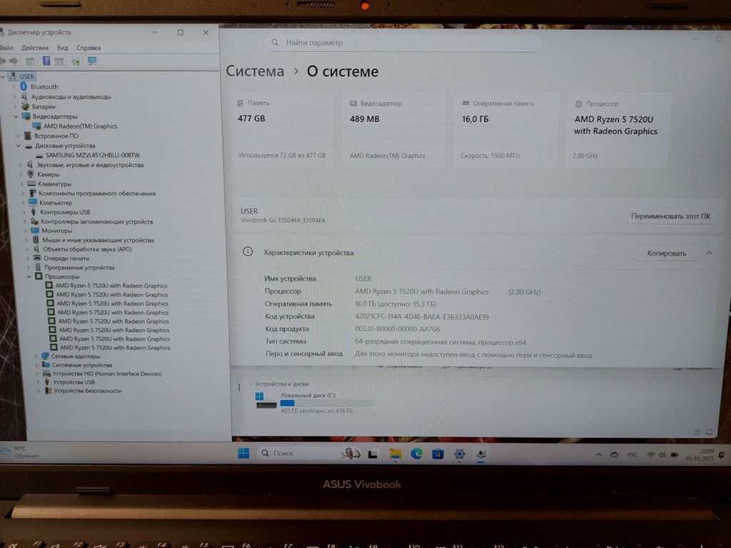 ПРОЦЕССОР - AMD Ryzen 5 7520U 8 ЯДЕР 2800-4300MHz