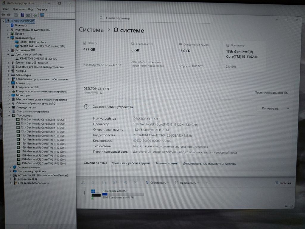 ПРОЦЕССОР - Intel Core i5-13420H 12 ЯДЕР 2100-4600MHz